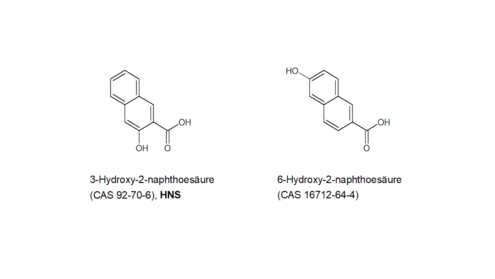 HNS: For the structurally very similar substance 6-hydroxy-2-naphthoic acid (CAS 16712-64-4, Figure 6 ), the ECHAshort forEuropean Chemicals Agency registration dossier (ECHAshort forEuropean Chemicals Agency 2019k) – analogous to HNS – specifies a positive in vitro chromosome aberration test and a negative in vivo micronucleus test. The test summary of the in vivo study states that 2000 erythrocytes per animal were examined for micronuclei. As the BfRshort forGerman Federal Institute for Risk Assessment does not have access to the original data, it is unable to verify this information.