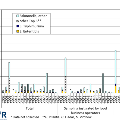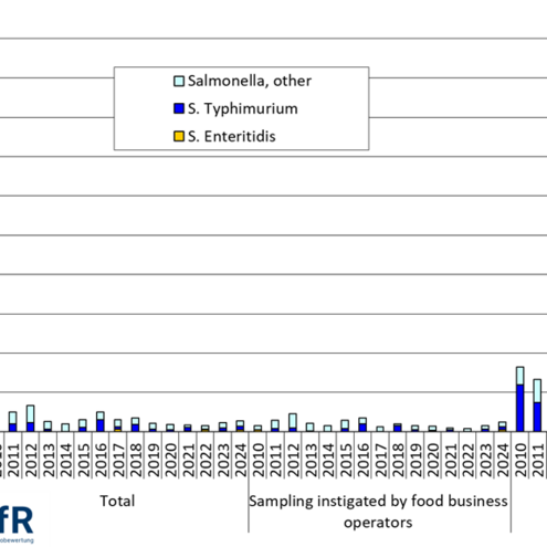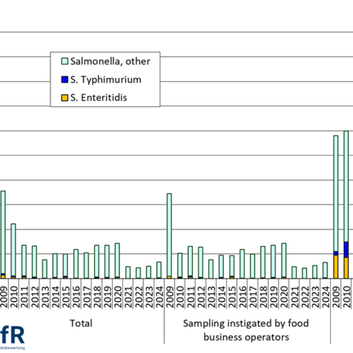 As part of the EU-wide programme to control Salmonella, Member States are required to compile an annual report on the current situation. This report describes the proportion of Salmonella-positive flocks in breeding poultry (Gallus gallus), laying hens, broilers and breeding and fattening turkeys. Special attention is paid to the detection of selected serovars of particular importance for human infections. The German Federal States, responsible for monitoring and control measures, submit the annual test results from sampling at the initiative of the operator and from sampling as part of official control. The report on the control programme is compiled annually by the Federal Institute for Risk Assessment (BfRshort forGerman Federal Institute for Risk Assessment) on the basis of this data.