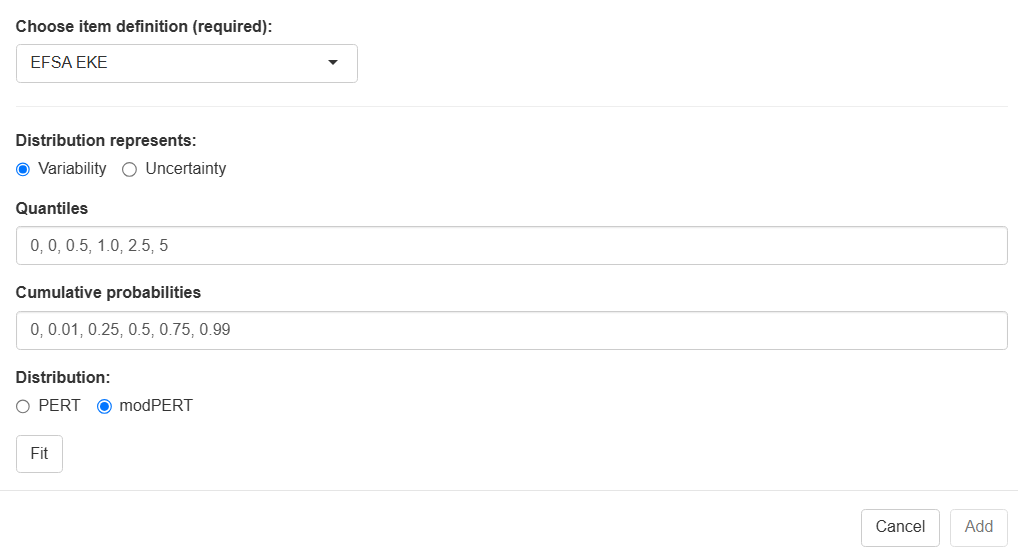 @Robert: this section accounts for the fact that we have disabled the EFSA EKE option. Except the availability of the PERT for fitting a cdf everything should be fine with this simplification. I also appreciate that users may fit other distributions than PERT to their EKE results.