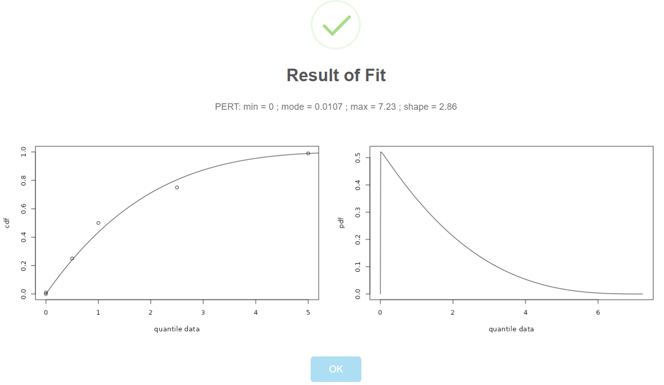 - Using shiny rrisk distributions to fit a PERT or another distribution model as described above.