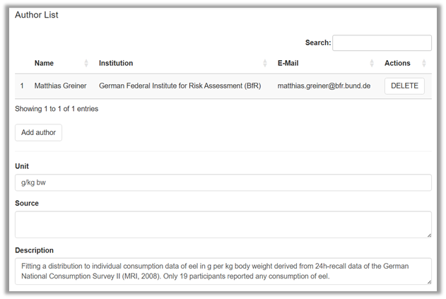 This opens a new window in which a documentation can be entered similar to the documentation of a shiny rrisk model (Figure 9). Technical details about the documentation are provided in the Modelling framework tutorial under Documenting and reporting | Adding general model description.