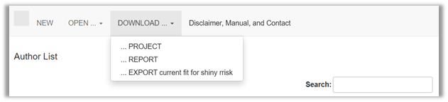| SAVE | Download the fitting project, report or export to shiny rrisk session. |